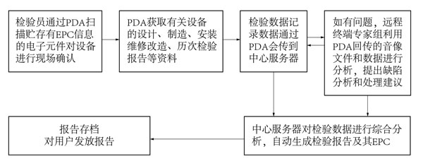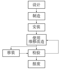 近几年来,国内提出了很多关于特种设备检验检测方面物联网模块的应用设计,其中一个共同特点是都从特种设备管理追踪环节入手(设计、生产、使用、安装、移装、维修改造、报废)。其追踪有两条线索,即过程追踪(图1)和信息追踪(图2)。检验过程如图3所示。
