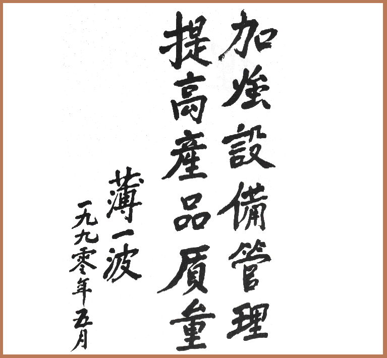 原中顾委常务副主任、国务院原副总理薄一波同志题词