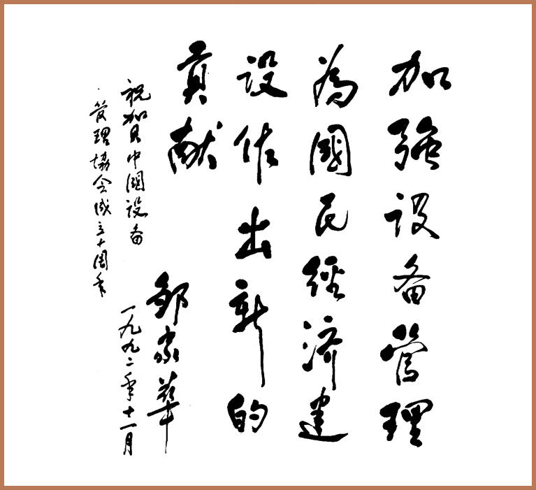 原中共中央政治局委员、国务院原副总理邹家华同志题词