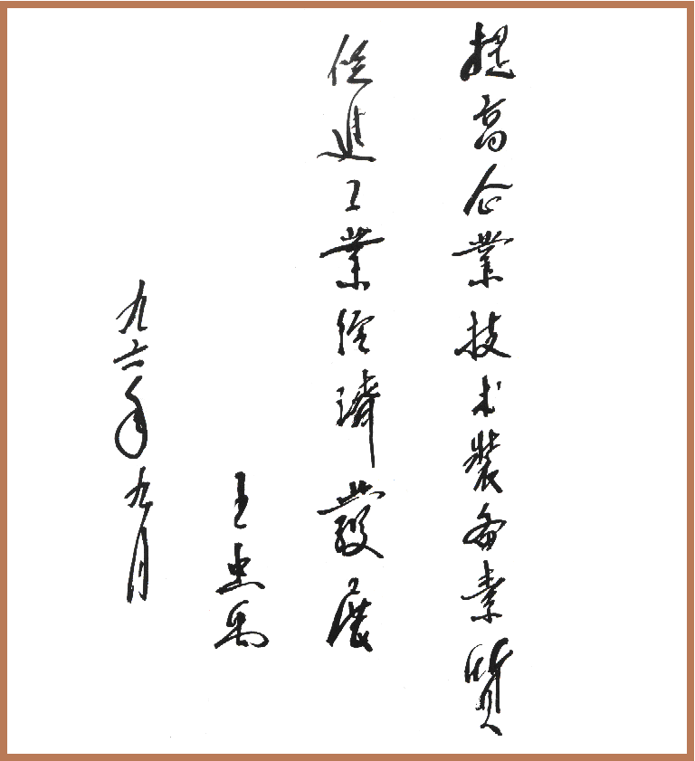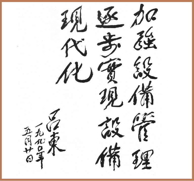 原冶金工业部部长、原国家经委主任吕东同志题词