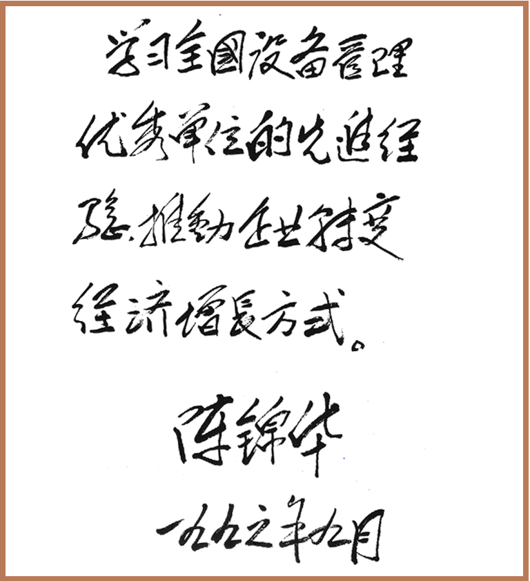 全国政协原副主席陈锦华同志题词